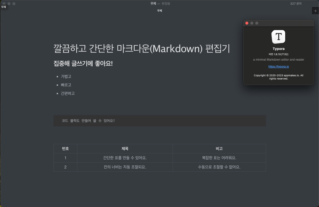 - 분류: 마크다운(Markdown) 지원하는 글쓰기 프로그램