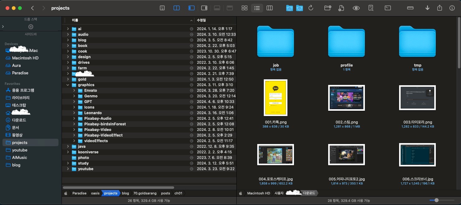 - 단점: 익숙해지면 기본 탐색기(파인더)만으로 답답함을 느끼게 됩니다.